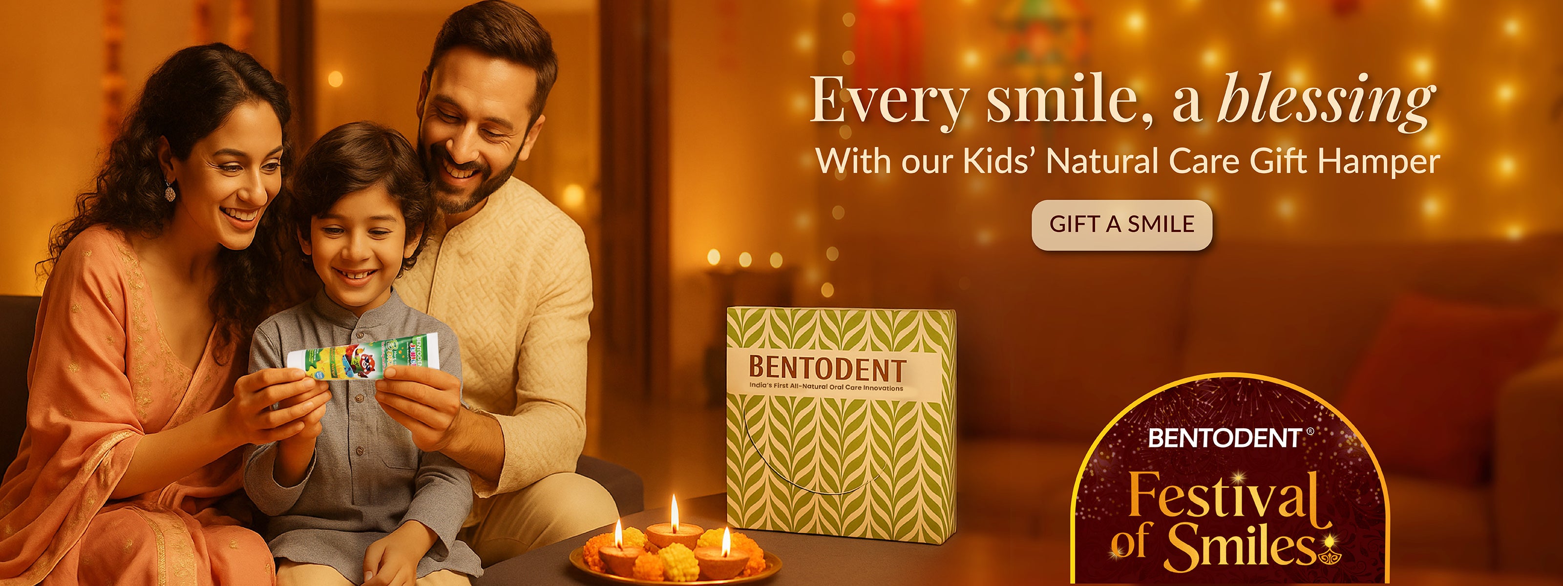 Bentodent Festival Smile Box - 3 Natural Toothpaste, Easy Floss, bamboo Brush and Tongue Cleaner